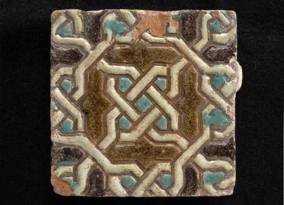 Technika: | ónmázas; színesen festett; ún. cuerda seca (száraz-cérna) eljárás |