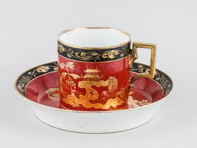 Csésze aljjal - Chinoiserie, kínai lakkfestést imitáló dekorral