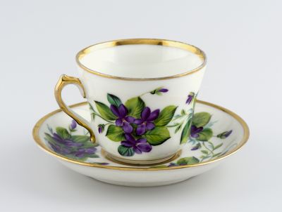 Jelzés: | csésze: alján, a mázba karcolva: 4; alj: alján, máz felett kobaltkékkel festve: kurzív „á"; koronás magyar címer |