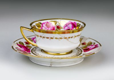 Technika: | máz felett aranyozott; máz felett színesen festett; negatív forma felhasználásával készült; öntött részletek |