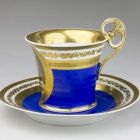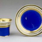 | Technika: | aranyozott; kék fonddal; máz felett színesen festett |