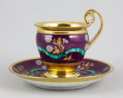 Jelzés: | a csésze alján masszába nyomva: pajzsjegy / D31 / 831; máz fölött pirossal: 138 (festőszám); az alátét alján masszába nyomva: pajzsjegy / 831; máz fölött pirossal: 138 (festőszám) |