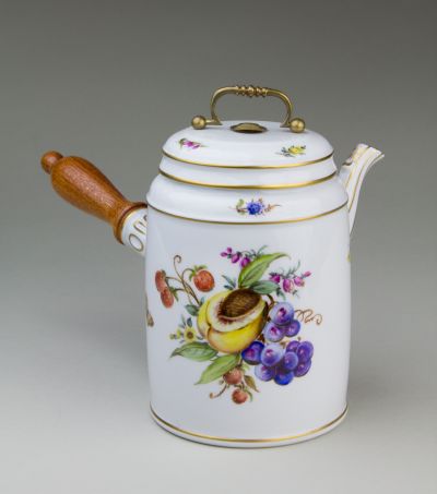 Csokoládés kanna fedéllel - Gyümölcsökkel, virágokkal és pillangókkal