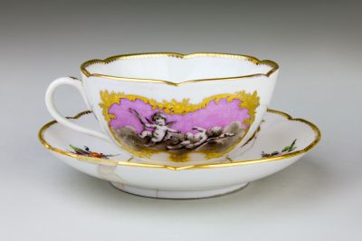Jelzés: | csésze: alján, száraz bélyegzővel benyomott bajor címer; a masszába karcolva: 1/5 / a masszába karcolva: 3; csészealj: alján, száraz bélyegzővel benyomott bajor címer; a masszába karcolva: 1/5 / a masszába karcolva: 3 |