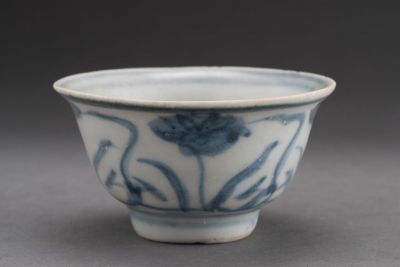Csésze - Lótuszokkal, öblében stilizált fu (szerencse) írásjeggyel
