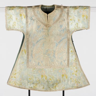 Anyag: | ezüstszínű fémfonal; len; selyem |