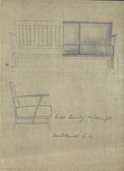 Terv - hegyfalui TBC Szanatórium, személyzeti társalgó, bútor