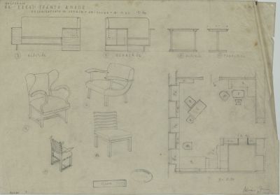 Terv - úriszoba berendezése, ülőbútorok Keéri-Szántó Andor lakása számára