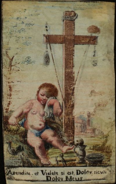Szentkép - a könnyeit törlő gyermek Jézus az Arma Christivel