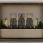 Keretbe foglalt, térbeli kompozíció központi eleme a triptichon-szerű színes rézkarc, az Iparművészeti Múzeum kupolás főbejáratának ábrázolásával.