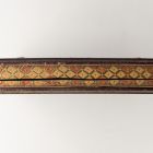 | Technika: | aranyozott, poncolt, festett metszés; befűrészelt, sima gerinc; bőrkötés; bőrnyílásos előzék; kézi aranyozás; vaknyomással díszített |