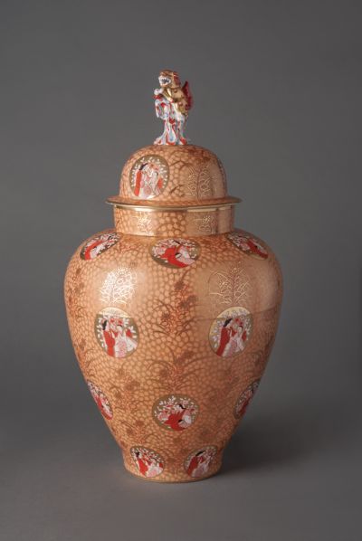 Díszedény fedéllel - Japonizáló (Kyoto stílusú) dekorral