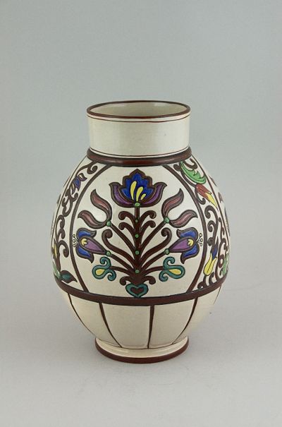 Technika: | bemélyített kontúrok; színes mázakkal festett |