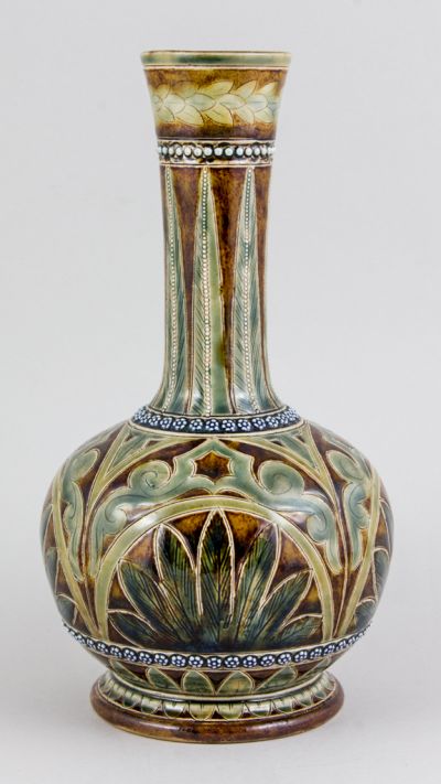 A Doulton Stúdió művészei számára a népművészet, a rajnai reneszánszkori kőcserepek szolgáltak előképül. A korabeli magastüzű, színes mázkülönlegességeket éppúgy alkalmazták, mint a 18. századi, gyöngyszerű magastüzű masszafelrakást, amelyet Barbara Mundt szerint a Doulton Stúdióban Arthur B. Barlow újított fel (vö: B. Mundt: Historismus. Kunsthandwerk und Industrie im Zeitalter der Weltausstellungen. Berlin 1973, p. 180.).