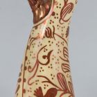 | Technika: | formába préselt elemmel kiegészített; korongozott; ónmázas; rézlüszterrel festett |
