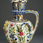 | Technika: | gerezdelt; kézzel formált; magastüzű színes mázakkal festett; plasztikus díszítés |