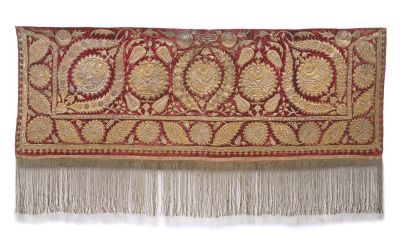 Anyag: | aranyozott ezüstfonal; bársony; ezüstfonal; taftselyem |
