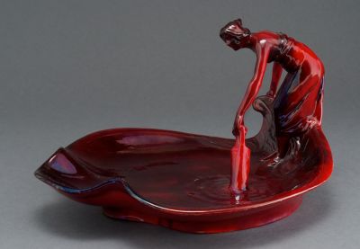 Dísztál - Vizet merítő nőalakkal