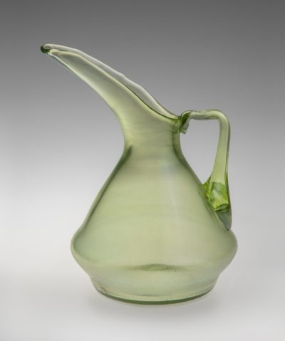 A tárgy formaadásában ciprusi, illetve 18. századi perzsa előképet követ, azonos a múzeumi gyűjtemény egy, a Daum testvérek gyárában készült kancsójával (lásd itt). A tárgy egész felülete irizáló.