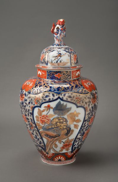 Díszváza fedéllel - Japonizáló (imari stílusú) dekorral