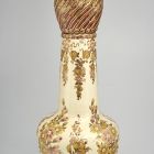 | Technika: | arannyal kontúrozott; csavartan bordázott; domborműves díszítés; magastüzű színes mázakkal festett; öntött elemekből összeállított |