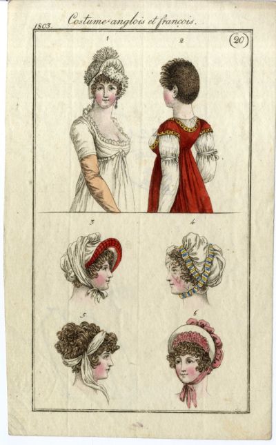 Divatkép - kalap és frizura dívat, melléklet, Journal des Ladies et des Modes, Costume Parisien
