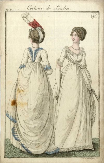 Divatkép - nők fehér ruhában, melléklet, Journal des Ladies et des Modes, Costume Parisien