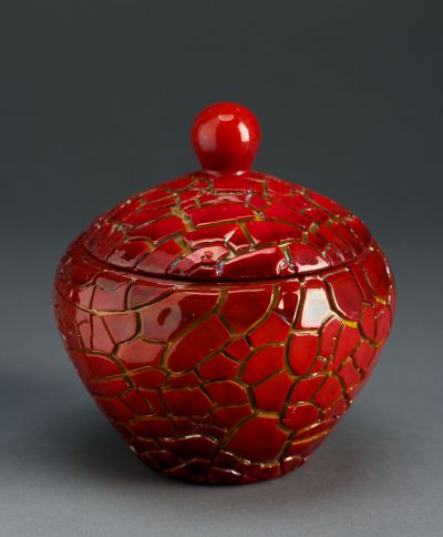 Technika: | eosinmázzal díszített; kétrétegű máz; öntött forma; vörös eosinmázzal fedett |