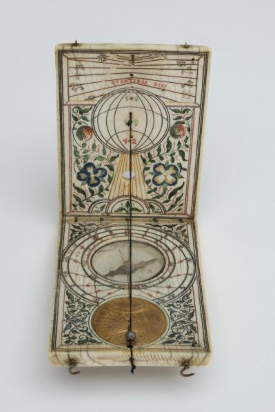 Az itt bemutatott napóra a 17. század közepe táján, a leghíresebb gyártóközpontban, Nürnbergben, ott is a legrégebbi, a 15. század végétől több generáción át működött Tucher (vagy Ducher) család műhelyében készült. (Kivételes módon a családnak még nőtagja is akadt, aki űzte a mesterséget.) Készítményeik jellegzetes, koronás kígyót ábrázoló jelzésük alapján ismerhetők fel. A nemes anyagból faragott napóra világos felületét többszínű, vésett, gazdag reneszánsz növényi ornamentika borítja, réz számlapjait aranyozással gazdagították. Művészi megmunkálása célszerű, praktikus kialakítással járt együtt. Függőlegesre felnyitható fedőlapján kívül szélrózsa, belső oldalán zodiákus napóra és a földrajzi szélesség fokbeosztása található. Utóbbi megfelelő furataiba rögzíthető a fonalból készült árnyékvető egyik vége. A fonal másik végét az alaplap széléhez rögzítve, árnyéka az alaplapon található óraszámlapra vetül.