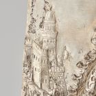 A kompozíció felső szélén harcoló vitéz kardjára vésve: „FRIEDRICH I.". A különlegesen magasan trébelt jelenet technikai virtuozitását tovább fokozza az az érdekes megoldás, hogy a fővezér kengyelét külön forrasztották és utólagosan applikálták rá a domborműre.