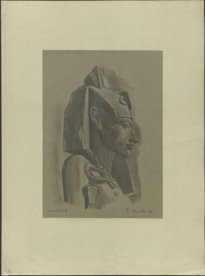 Rajz - IV. Amenhotep /Ehnaton/ fáraó szoborfő, jobb oldali profil