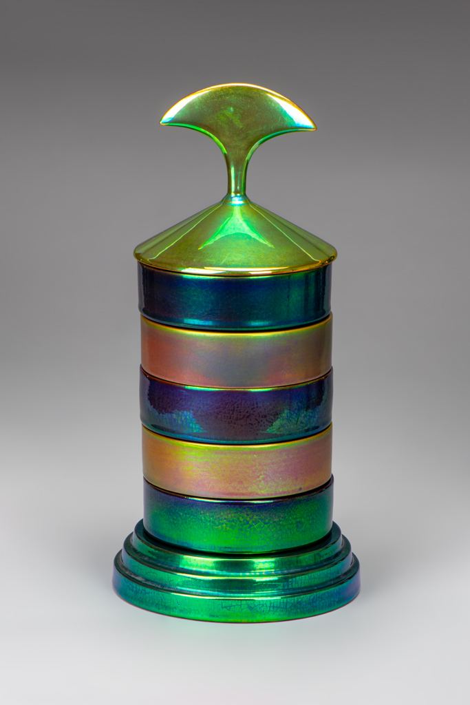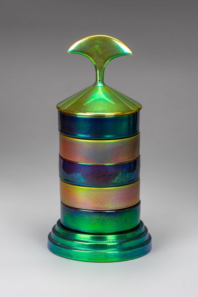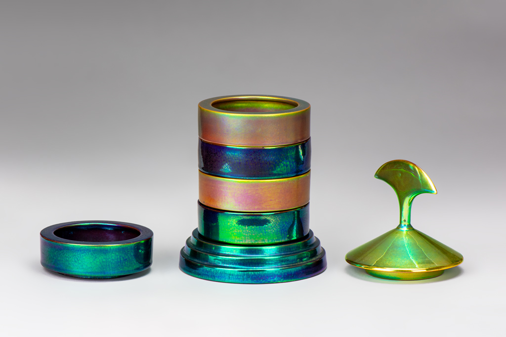 A tárgy, a Ferenczy Noémi-díjas keramikusművész Kádasi Éva tervei és prototípusa alapján készült a Zsolnay Porcelánmanufaktúrában, limitált szériában. Kádasi az ékszertartót – eredetileg – az 1993-ban, porcelántervezőkből alakult DeForma Csoport és a Zsolnay Porcelánmanufaktúra közös, A fény – Zsolnay eozin című szimpóziumára tervezte 2002-ben Siklóson, a Baranya Megyei Alkotótelepek Kerámia Alkotóházában.