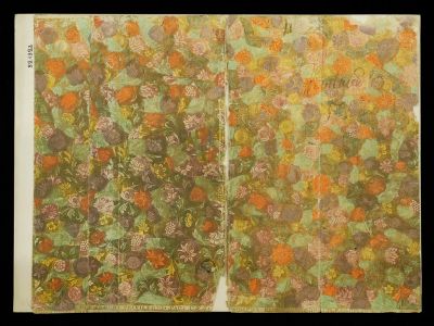 Arany és tarkaszínű préselt egymásba hurkolódó spirális indadísszel (hozzátartozik 59.1391-hez).