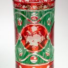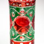 | Technika: | formába fúvott; gravírozott; hámozottan csiszolt; rézrubin pácolt; többrétegű üveg |