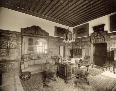 Enteriőrfotó - a bajmóci Pálffy-várkastély dolgozószobája 17. századi török falburkolattal