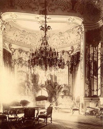 A Wenckheim család régi pesti háza az Egyetem téren állt, a Károlyi-palota mellett (ld. itt). Az egyemeletes, klasszicista Wenckheim-házzal szemben a család új palotájának külső megjelenését és belső kialakítását egyaránt a neorokokó (Louis XV.) stílusjegyek uralják. Az itt bemutatott fényképfelvételen a főhomlokzati rizalit emeletén elhelyezkedő, a főlépcsőházból nyíló fogadóterem látható.