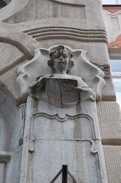 Épületfotó - a Dob utcai elemi iskola (Budapest, Dob utca 85.) bal oldali bejárati kapuját keretező pilaszter