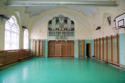 Épületfotó - a Dob utcai elemi iskola (Budapest, Dob utca 85.) egykori torna-és díszterme