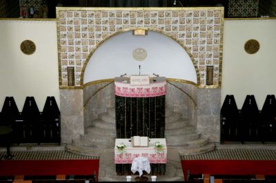 Épületfotó - a fasori református templom (Budapest, Városligeti fasor) szószéke és úrasztala