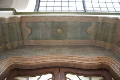 Épületfotó - a Gresham-palota (Budapest, Széchenyi István tér 5.) déli lépcsőbejáratának kerámia burkolatú fala