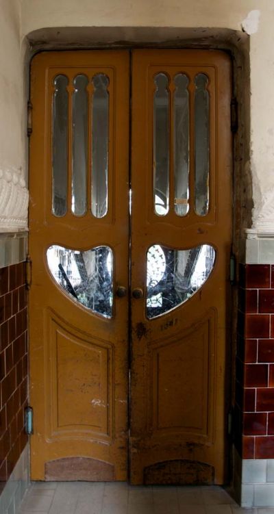 Épületfotó - a Gróf-palota (Szeged, Tisza Lajos körút 20/b.) kapualjának szélfogó ajtaja