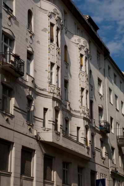 Épületfotó - a Gutenberg-ház (Budapest, Gutenberg tér 4.) déli homlokzatának részlete