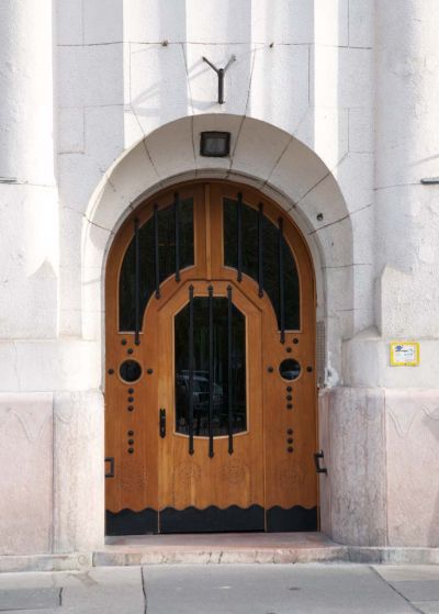 Épületfotó - a Gutenberg-ház (Budapest, Gutenberg tér 4.) főhomlokzati bejárata