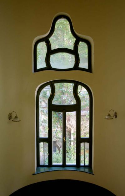 Épületfotó - a kecskeméti Cifrapalota főlépcsőházának egyik ablaka