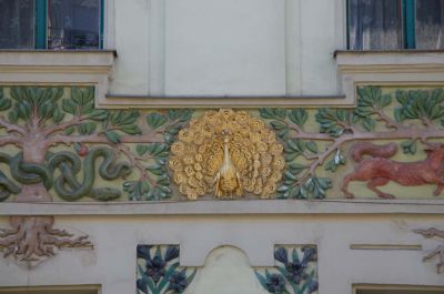 Épületfotó - a Lindenbaum-ház (Budapest, Izabella utca 94.) főhomlokzata-a Föld őselem frízének részlete