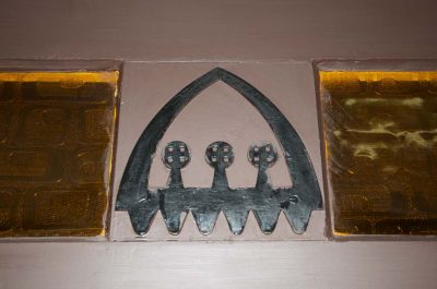 Épületfotó - a Malonyai-villa (Budapest, Izsó utca 5.) földszinti lakása – az egykori szalonba vezető ajtó kovácsoltvas dísze