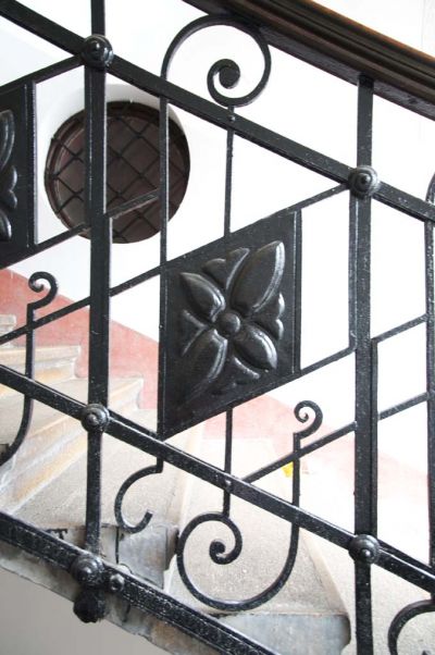 Épületfotó - a Mellinger-ház (Budapest, Ráday utca 14.) melléklépcsőjének korlátrácsa