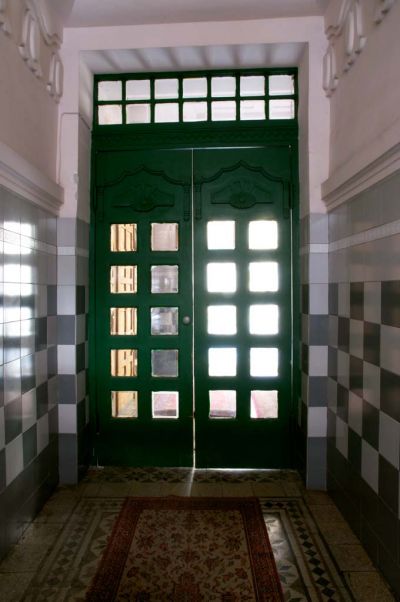 Épületfotó - a Nyár utca 10. szám alatti lakóház kapualja az udvarra nyíló szélfogó ajtóval