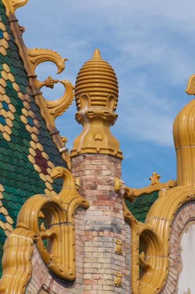 Épületfotó - a Postatakarékpénztár (Budapest, Hold utca 4.) pártázatos attika falának részlete
