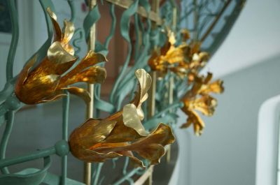 Épületfotó - a Reök-ház (Szeged, Tisza Lajos krt. 56.) főlépcsőházának liliomos korlátrácsa
